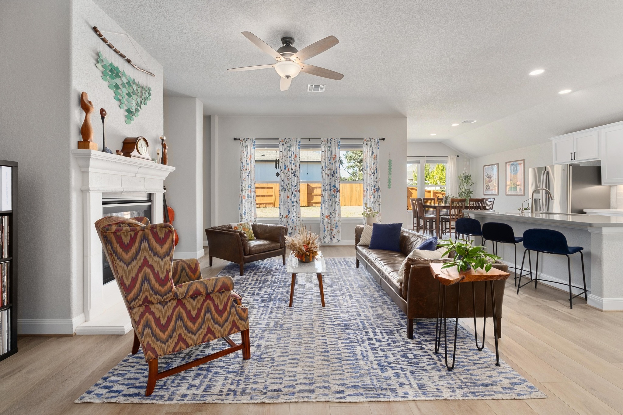 Welcome to 112 Bell Hill Drive! This beautifully maintained 4-bedroom, 3-bathroom home with a dedicated office/flex room, is set on a desirable corner lot in the heart of Caliterra, one of Dripping Springs’ most sought-after master-planned communities. Built in 2020, this home feels fresh, bright, and thoughtfully designed. Step inside and you’re greeted by an inviting living room anchored by a fireplace, accent walls, and soft natural light. The open floor plan flows into a chef-ready kitchen complete with crisp white cabinetry, built-in gas range, and an inviting center island with quartz countertops. It’s the kind of kitchen that makes everyday living easy and gatherings even better. Just off the main living area, the flex room offers the versatility today’s lifestyle demands: an office, playroom, music lounge, or cozy media retreat. This separate living/game room provides additional breathing room for relaxation and fun. The spacious primary suite features a peaceful backyard view, a deep walk-in closet, and a spa-inspired bath with dual sinks and walk-in shower. Three additional bedrooms and two more full baths are thoughtfully tucked away for comfort and privacy. Outside, the covered back patio and level fenced yard are ready for weekend grilling, yard games, and Texas sunsets. The 3-car garage offers plenty of room for vehicles, storage, and hobbies. And then there’s the lifestyle. At Caliterra, nature and community come first. This neighborhood offers miles of creekside trails, a resort-style pool, The Hall and The Front Porch gathering spaces, playgrounds, dog park, and 250+ acres of preserved open space where neighbors become friends and days feel unhurried. All within Dripping Springs ISD and just minutes to wineries, breweries, coffee shops, dining, and everything that makes Dripping Springs so special.