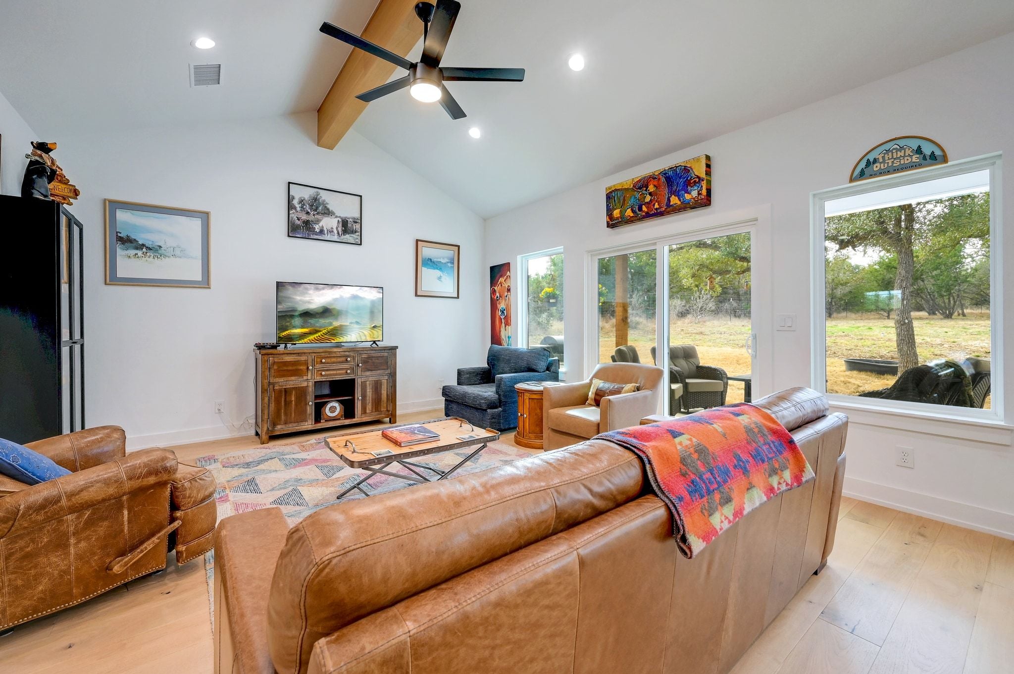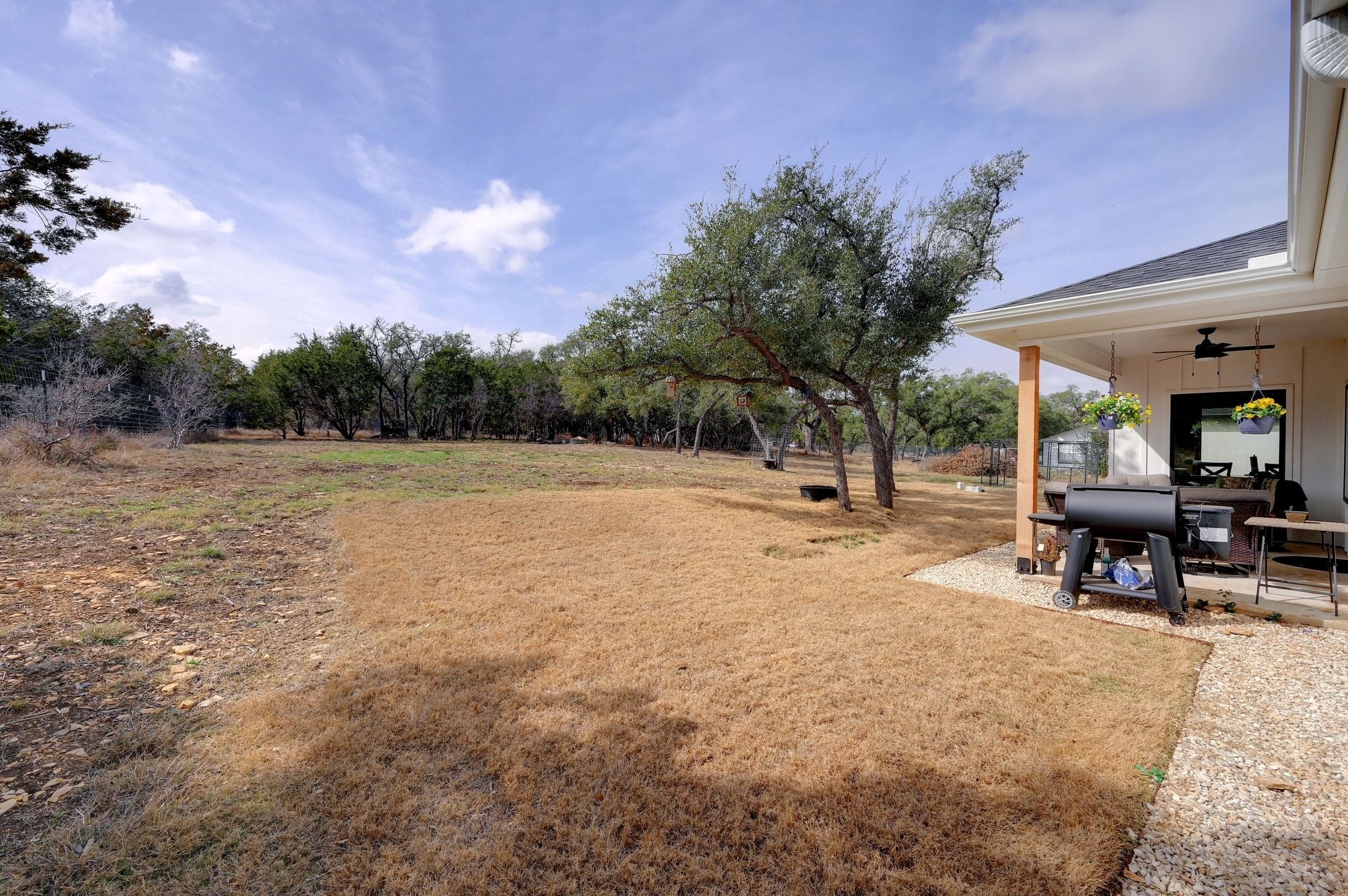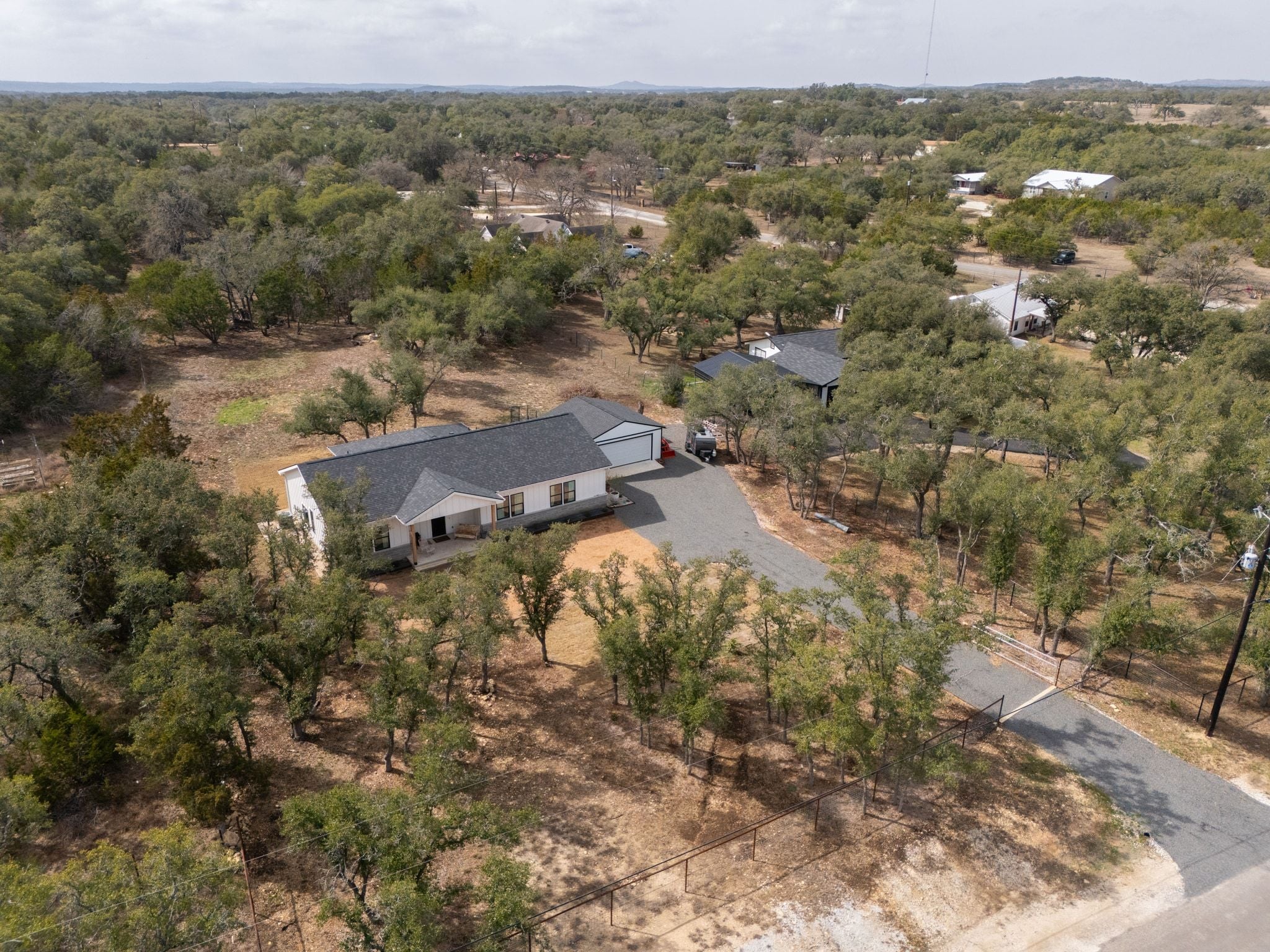 Welcome to 200 Rust Ranch Road! Like-new and built in 2025, this 4-bedroom, 2.5-bath home offers the perfect blend of modern comfort and Hill Country charm. Situated on a fully fenced acre with a gated entry, this property provides both privacy and space to enjoy the outdoors. Step inside to find a bright, open layout featuring stainless steel appliances, stylish finishes, and thoughtful design throughout. The spacious kitchen flows seamlessly into the living and dining areas, and the vaulted ceiling and large picture windows bring in abundance of natural light. A welcoming front porch and covered back patio and create inviting spaces to relax and take in the peaceful surroundings. The detached 2-car garage offers added flexibility and storage. Enjoy the benefits of a low tax rate while being conveniently located less than 10 miles from Lowe’s, Blanco State Park, and historic downtown Blanco, giving you easy access to shopping, recreation, and dining.