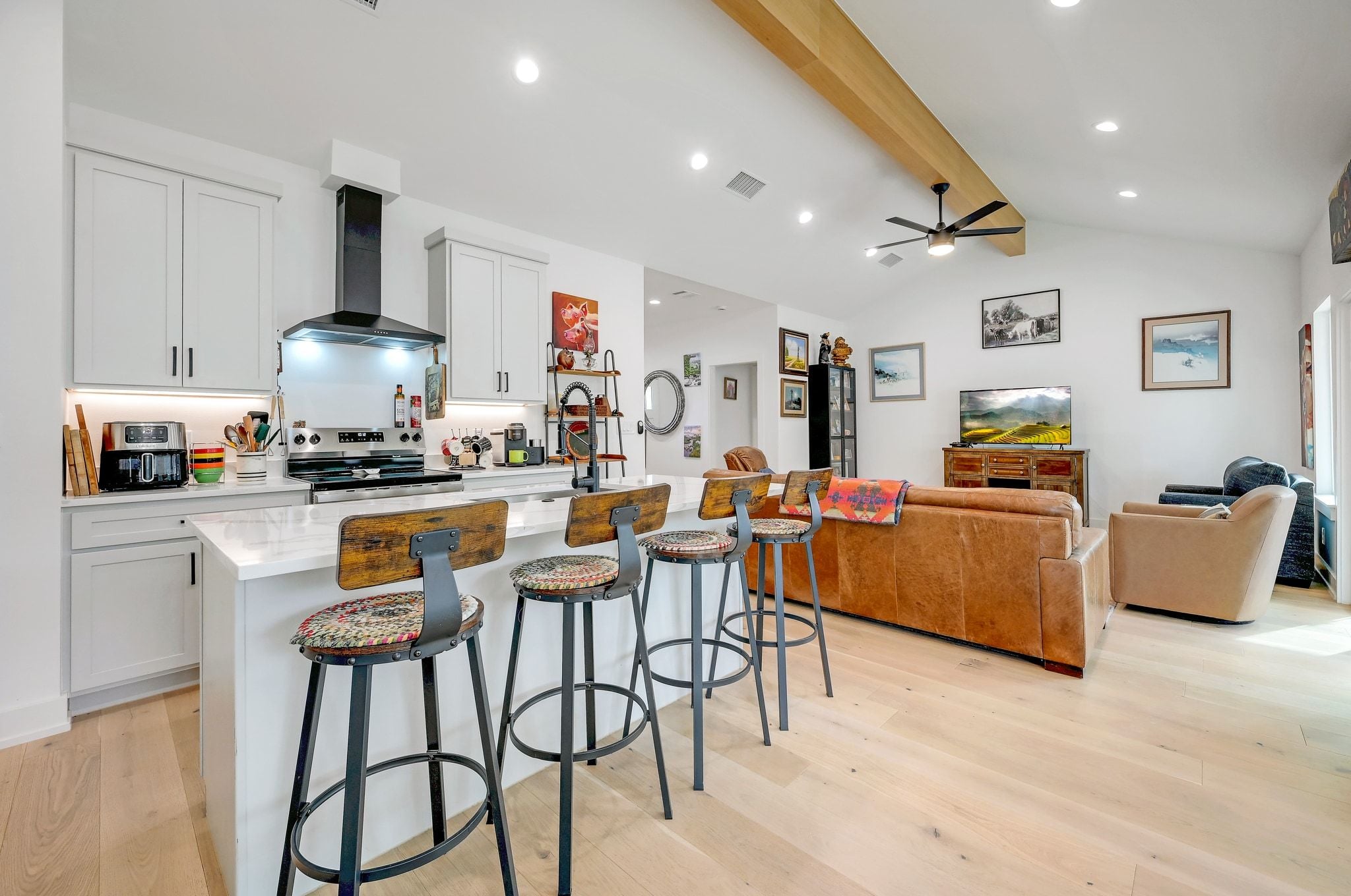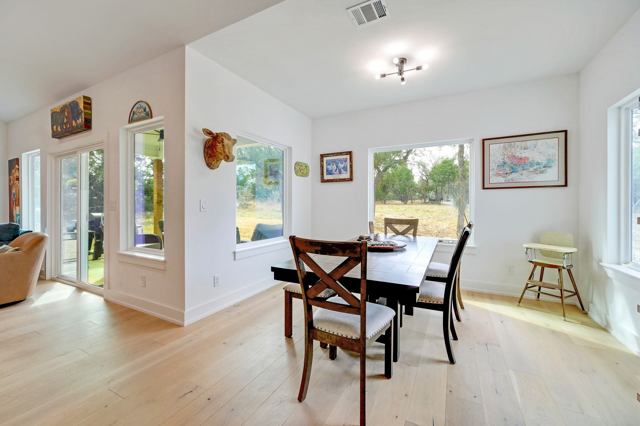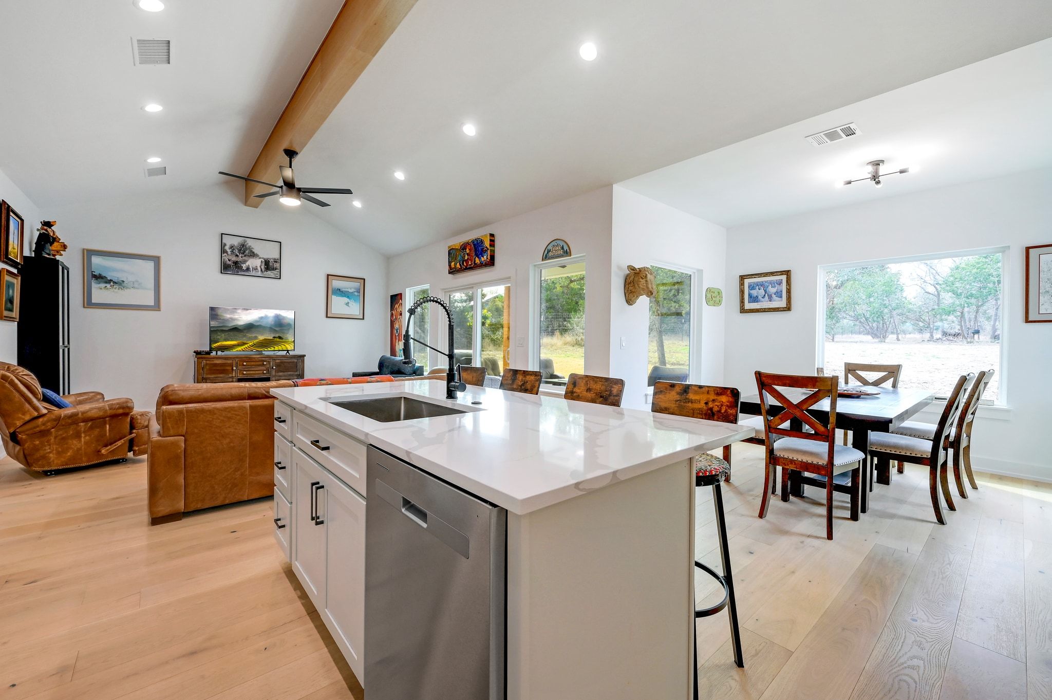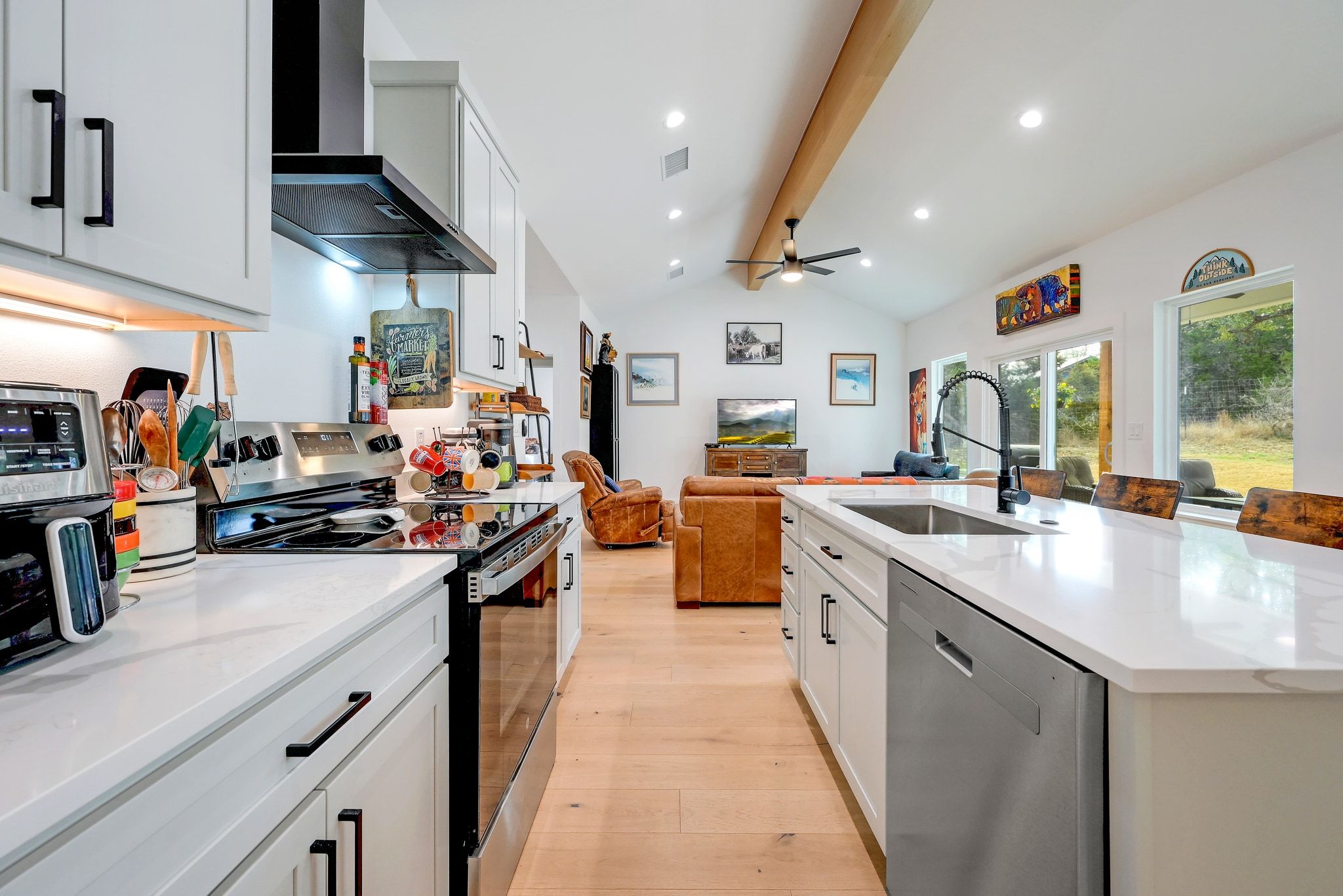 Welcome to 200 Rust Ranch Road! Like-new and built in 2025, this 4-bedroom, 2.5-bath home offers the perfect blend of modern comfort and Hill Country charm. Situated on a fully fenced acre with a gated entry, this property provides both privacy and space to enjoy the outdoors. Step inside to find a bright, open layout featuring stainless steel appliances, stylish finishes, and thoughtful design throughout. The spacious kitchen flows seamlessly into the living and dining areas, and the vaulted ceiling and large picture windows bring in abundance of natural light. A welcoming front porch and covered back patio and create inviting spaces to relax and take in the peaceful surroundings. The detached 2-car garage offers added flexibility and storage. Enjoy the benefits of a low tax rate while being conveniently located less than 10 miles from Lowe’s, Blanco State Park, and historic downtown Blanco, giving you easy access to shopping, recreation, and dining.